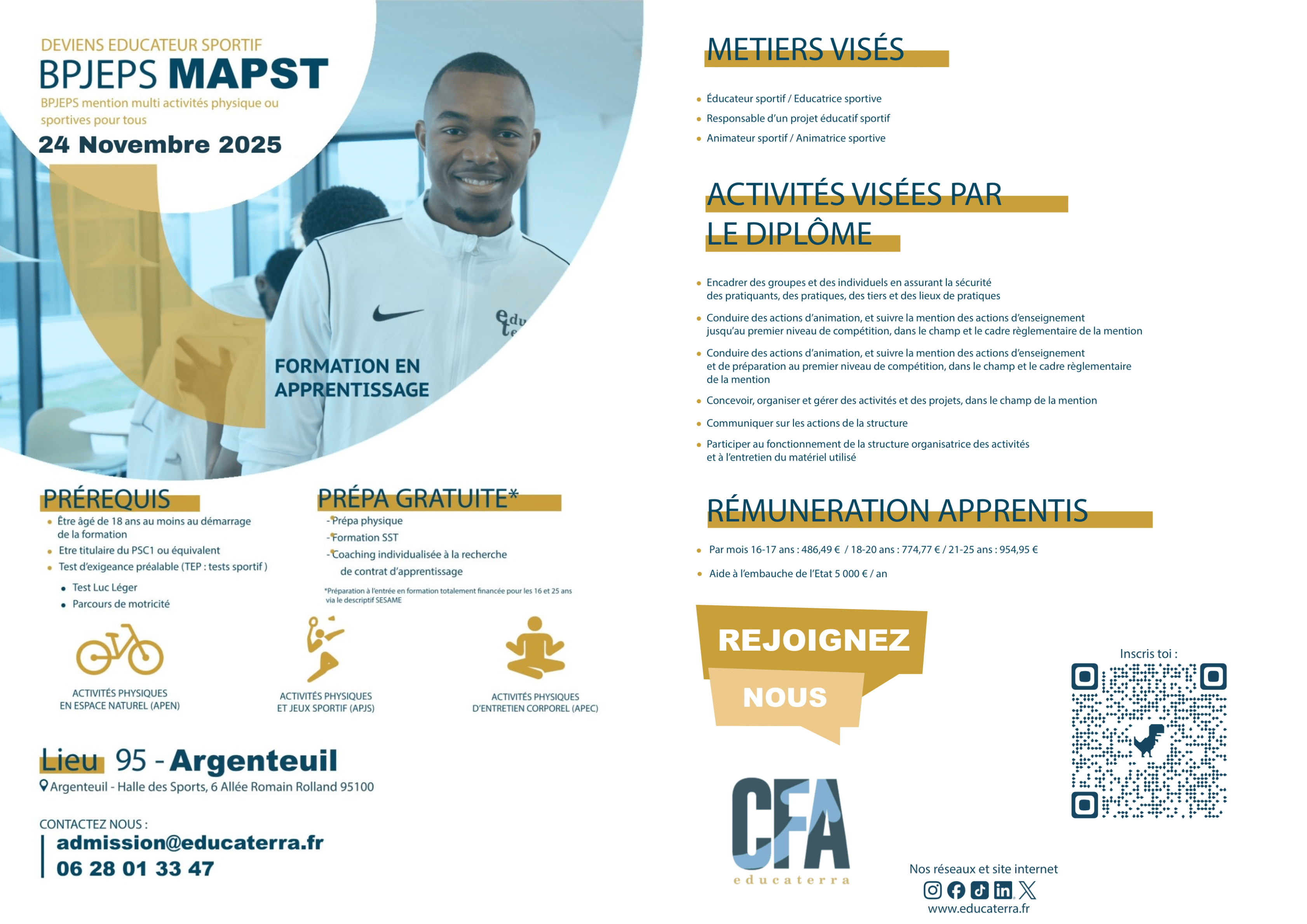 - Présenter un certificat médical avec la mention de non-contre-indication à la pratique et à l’enseignement des activités physiques et sportives datant de moins d’un an à la date de l‘entrée en formation