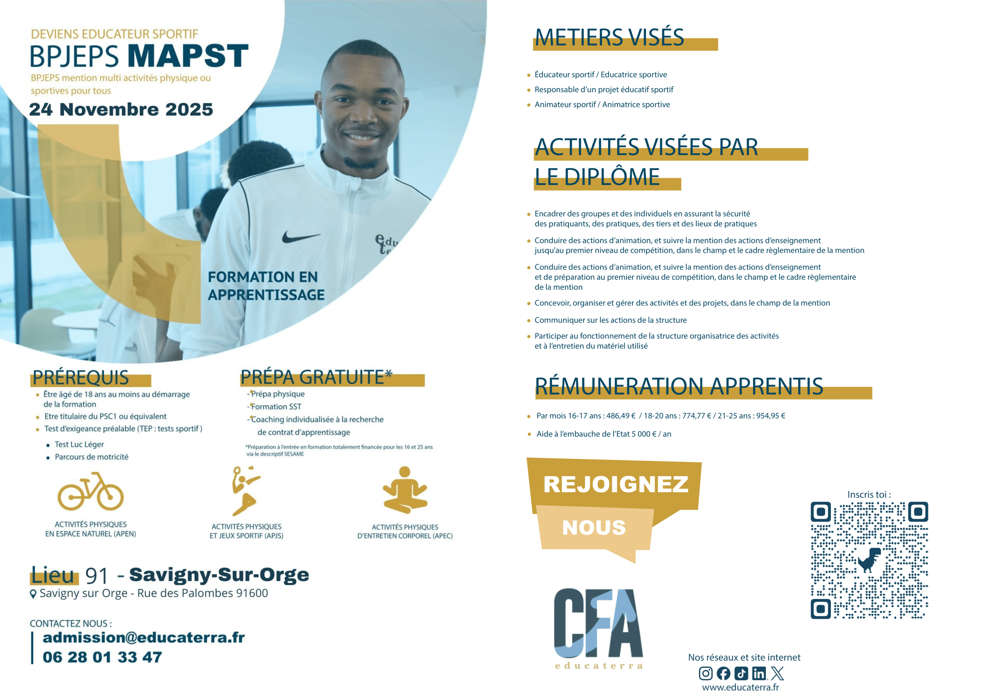 La formation met l’accent sur la conception, l’animation et l’encadrement de programmes d’activités physiques, et permet aux diplômés d’adapter leurs séances à différents publics et contextes.Durée de formation :